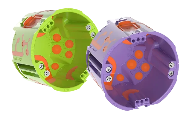 Vzduchotěsné bezhalogenové krabice s hloubkou 49 nebo 62 mm.