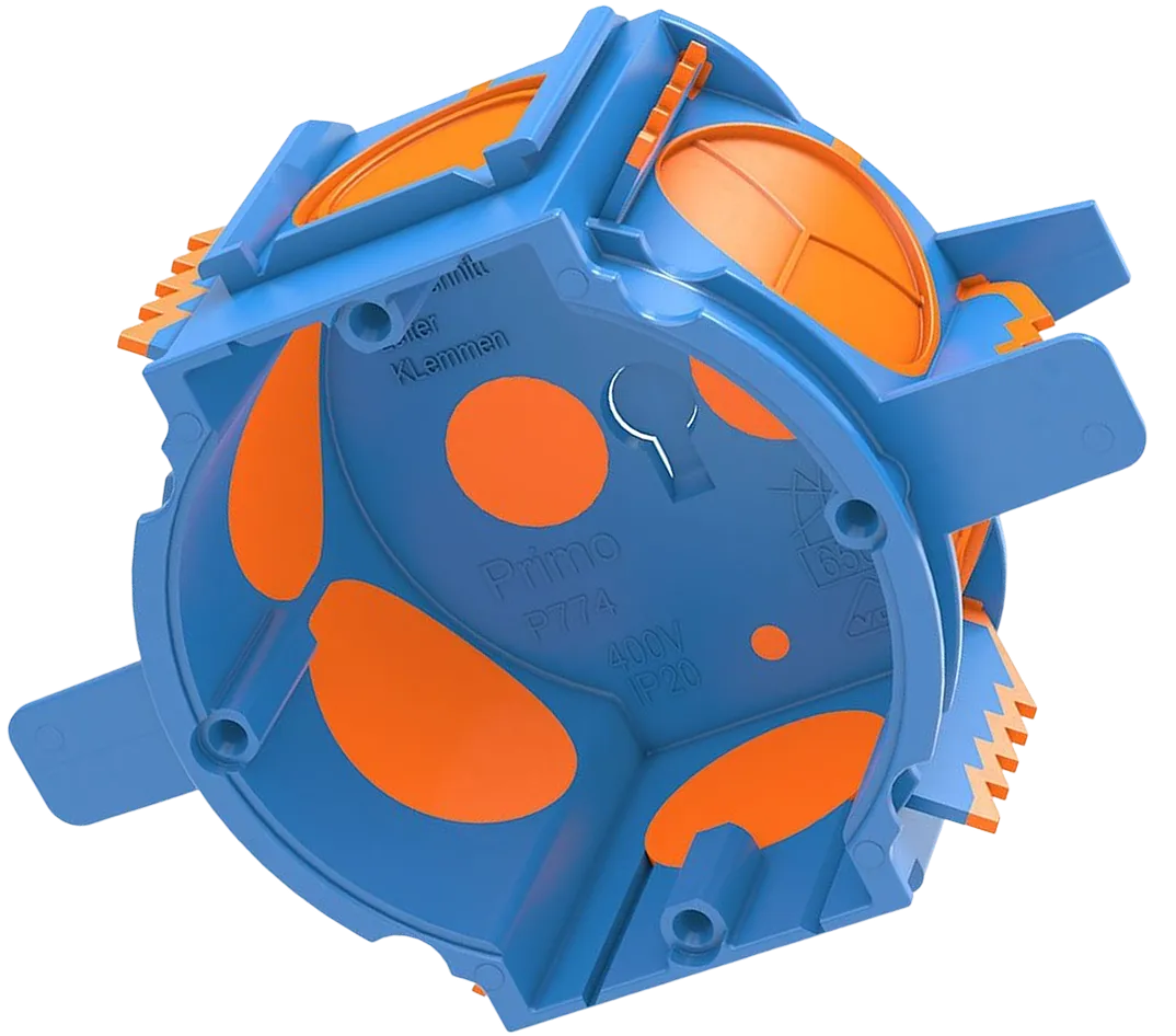 Ověřte si detaily elektroinstalační krabice ve 3D ukázce podomítkového řešení PRIMO®. Kliknutím a tažením myší krabici otáčejte. Najetím na kartičku se oranžově zabarví příslušný bod ve 3D ukázce.