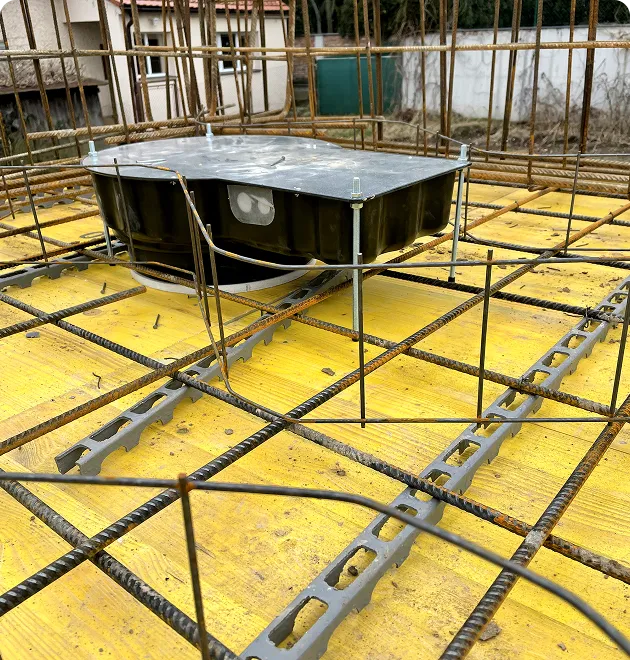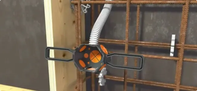 Krabice lze upevnit buď pomocí křídel přímo na výztuž, nebo volitelně přibitím na šalovací plentu. Pro přibití doporučujeme použití mezivýztužové hřebíkovačky z kategorie nářadí.