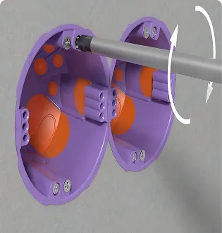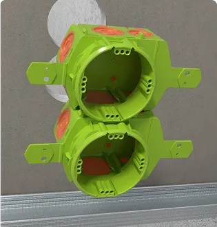 Krabice lze pevně spojovat v rozteči 71 mm – ideální pro vícenásobné rámečky v sádrokartonu nebo dřevěných konstrukcích. K přesnému vrtání otvorů slouží vrtací šablona s vodováhami, do dutých stěn pro průměry korunek 68 a 74 mm.