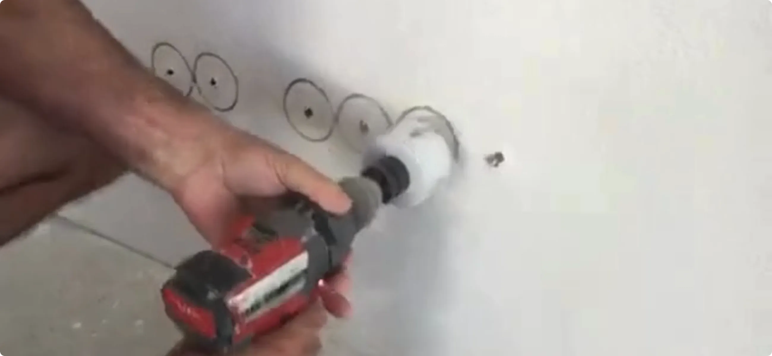 S vrtací šablonou a omítkovými dorazy osadíte vícenásobné rámečky rychle, přesně a bez rozměřování. Vysokootáčková vrtačka s vykružovacími korunkami zajistí čisté vrtání i bez příklepu.